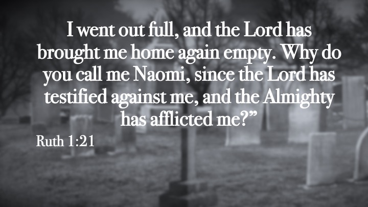 Except… life throws Naomi another curveball and her God allow it.  She buries not one, but both sons, while in that foreign country.  Her hands are empty.  What’s she supposed to do now? She left a country which brought a suggestion of death due to the famine.  Here she is, years later and her fear has come to pass.  All her loves are dead.  She is all alone.  Her heart is broken.